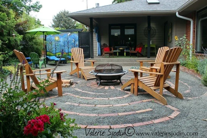 Here below is a photo of the labyrinth as a fire pit with Adirondack chairs around it: