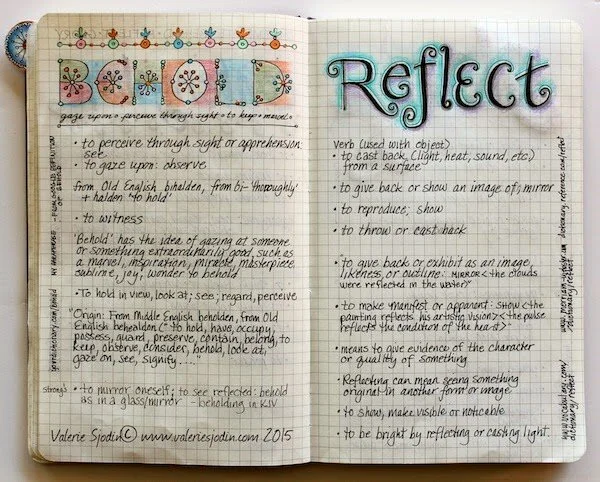 I have been taught that the word contemplate means to study and meditate on. That is true, but that is too narrow a definition. It is so much more, extending to the mind, and reaching beyond to the heart of the spirit, and into life itself! Contemplate, behold, reflect are verbs, actions to participate in. Dictionaries help clarify and broaden my understanding of the word/s. The Strong's Concordance defines the term in 2 Corinthians 3:18 "beholding," in the King James version, as to mirror oneself; to see reflected.