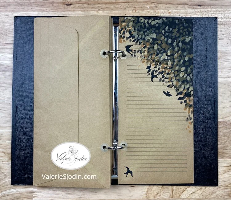 One thing I did to spark inspiration and accomplish something was go through a box of book collage items like old books and notebooks I collected over the years. One item seemed highlighted to me and I thought, It’s time to get rid of it or repurpose it. Midstream I thought you might like to see the repurposed version of the home records file. I needed it to be a short and simple project, so I glued a practice poppy painting I had hanging around on the cover and stenciled the inside envelopes with one little stencil, layering it. It makes me happy to look at it, and it’s ready to hold my small scavenged collage pieces.