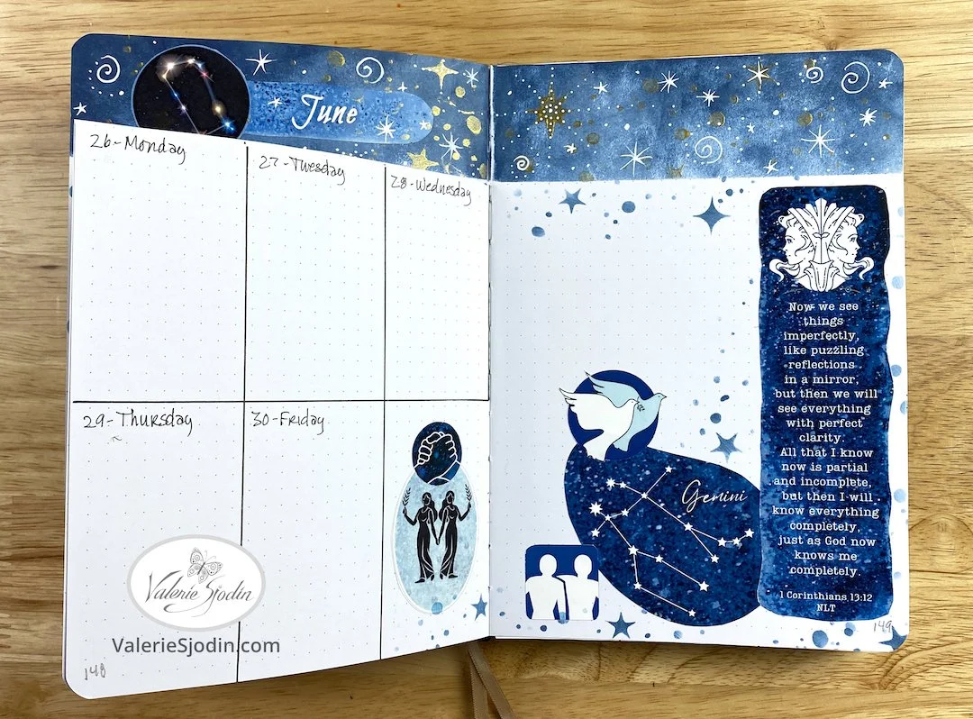 There is a digital download available of the Gemini constellation from a biblical perspective that I used in the planner journal pages. https://www.valeriesjodin.com/shop