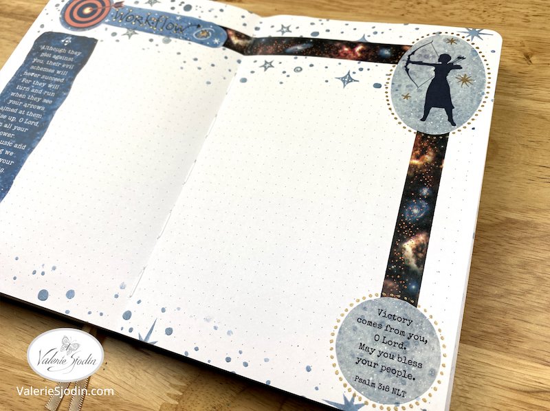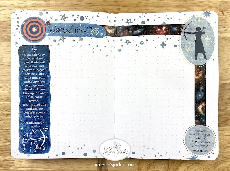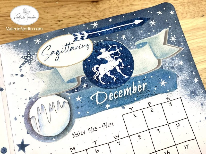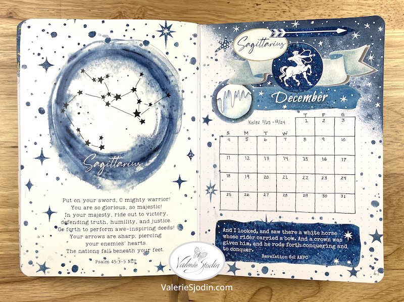 Below is a quick flip-through video of December’s journal featuring the Sagittarius constellation. If it is not clear, you can adjust the resolution by clicking on the gear icon at the bottom right, second from the end. I’ve used the Sagittarius digital download along with some of the moon download featured in my shop: https://www.valeriesjodin.com/shop
